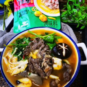 加入家乐酸汤肥牛酱料包,爆出香味。