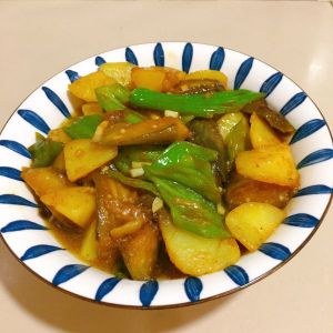 另起锅烧油 倒入青椒 茄子 翻炒到变软