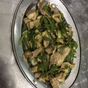 青椒加少许盐爆炒2~3分钟5成熟(大火)。