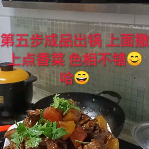 第四步排骨快熟时加入土豆胡萝卜丁 大火烧开 待土豆熟自己喜欢的程度 边缘放点淀粉大火收汁