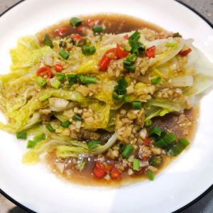娃娃菜切除底部清水洗净,每片一分为二撕开备用
