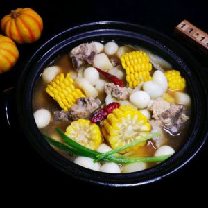 荸荠去皮,山药去皮,玉米切断,一起煮