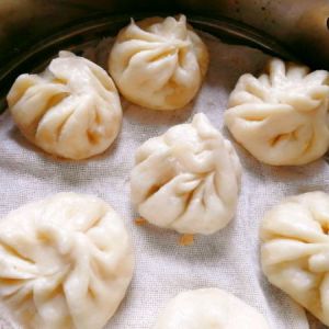 发酵至2倍大,有蜂窝状,底部有黏连,揉搓。分成几个小段。桌上撒粉,擀面杖揉皮,包成包子状。上锅蒸15分钟。焖1分钟,趁热打开拿起来(家庭版的,遇冷,顶部会粘住纱布容易破)