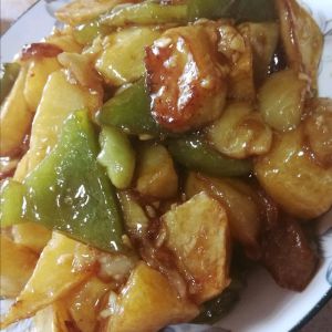 把土豆。茄子,柿子椒切成块,土豆和茄子用玉米干淀粉抓匀备用