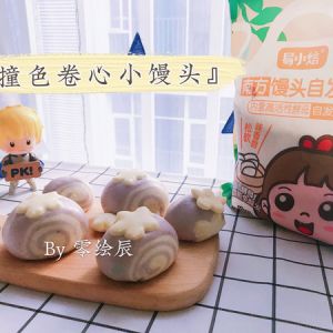 50克馒头自发粉加入适量的黑枸杞水和糖,搅拌成絮状
