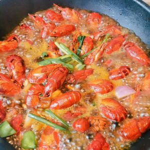再加入小龙虾爆炒,加入生抽老抽冰糖五香粉,五香粉多一些,炒匀