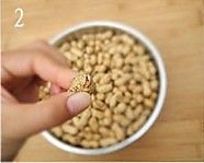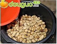 用拇指和食指轻轻按花生前面的一头,使花生壳裂开一个小口子。依次把所有的花生都按开一个小口子,这样煮的时候比较容易入味儿。