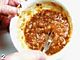 将生粉加进肉排内,拌匀后方加调味料,再加梅子面豉酱及红辣椒粒,转盛至直径20厘米之深碟内