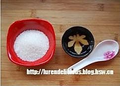 准备白糖小半碗。(最好选用绵白糖。这是因为绵白糖中含有20%的转化糖,而转化糖能抑止糖浆熬制过程中的晶体形成)