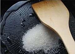 炒糖,很关键!锅内倒油少许。(油、白糖的比例一般为1:4)
