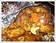 用锡箔纸将鸡翅包裹,放入烤箱,收口前倒入一定伏特加和剩下的酱汁,撒上可以沾满咖喱味道的蔬菜,还有蒜块和葱姜末。100-150度烤1个半小时,长的话不要过两个小时,会过头