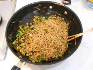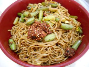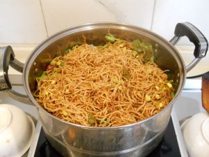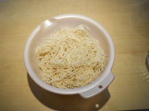 原料 面条 我是在市场上买的那种已经蒸过的面条,就是那种做炒细面那种面条,买不到这种面条的可以自己蒸