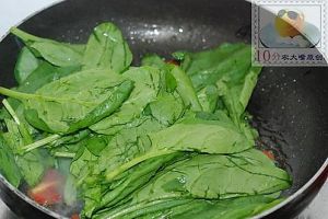 稍微煎一下,就把菠菜放进去炒熟~~~~