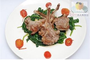 把烤好的羊排放在菠菜上,就成了~~~出锅