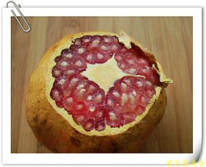 分别顺着石榴外皮纵向的棱将皮划破。最后用手轻轻一掰,就能吃到大块大块的石榴籽啦