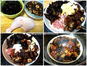 鸡腿洗净,斩成小块备用,云耳与香菇用温水泡发洗净备用。
