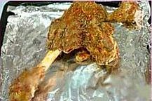 烤盘垫上锡纸,放入羊腿,烤箱预热,250度;