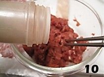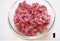 把肉茸放在碗中,加入适量料酒、盐、和一茶匙一品鲜。