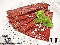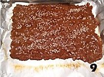 烤制后的肉脯明显回缩,倒掉烤盘中的水,在肉脯表面刷一层蜂蜜,撒适量白芝麻,入烤箱180度继续烤制15分钟。