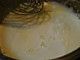 牛奶煮沸分次加入(鸡蛋+糖粉打好)