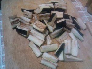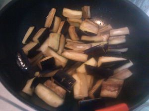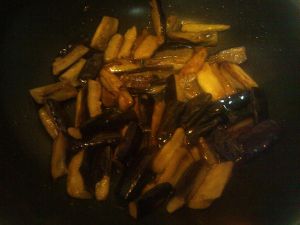 油锅中加入比炒菜稍多的食用油烧热,放入长茄子条。