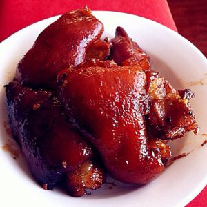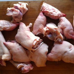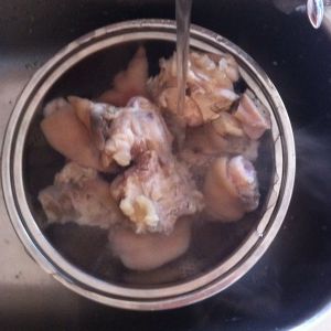 捞出煮好的猪蹄,放入凉水中冲洗干净。(用凉水可以让肉皮更紧实)