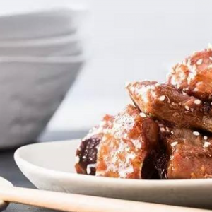 肋排炒至金黄后,加入黄酒,等酒气挥发后,分别加入酱油,冰糖,水和糖。