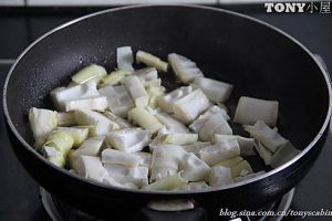 热锅。加入色拉油,可以适当多放点,没有油的油焖笋可不好吃。把切好的春笋在开水里焯一下,下锅大火翻炒。