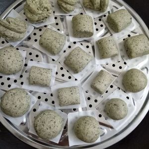 黑芝麻炒熟磨粉,我家的干磨机只能磨到这种程度,可以买现成的细腻的那种黑芝麻粉。