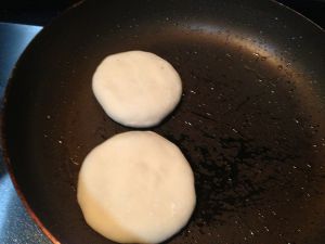 平底锅烧热后刷一层油,油热后,转偏小的中火。放入做好的饼