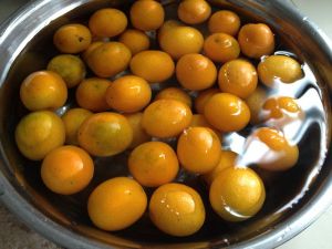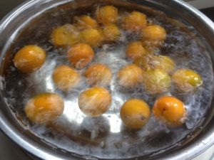 烧滚水,将洗干净的金橘放进水里煮三、四分钟。