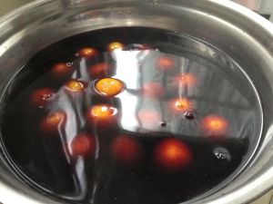 放晾凉的金橘放到红酒里,用小火煮三十分钟。