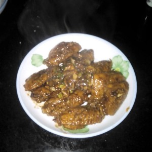 香喷喷的可乐鸡翅就做好了。今天的颜色没有以往的鲜亮,估计是放的生抽。但味道儿子还是给了满分。