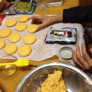 1:老南瓜去仔去囊蒸熟捣烂,并加若干糯米粉搅拌揉搓至不粘手