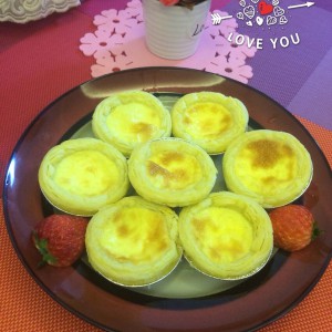 倒入蛋挞皮里,皮可以用叉子给底部戳几个小孔
