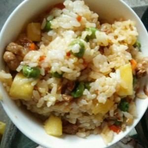 饭,猪肉,菠萝一起放着拌完就能出锅啦