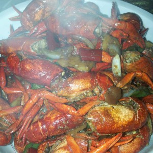 闷煮一下的虾子,可以出锅开吃了。出锅之前可以撒些胡椒粉,孜然粉,想吃什么口味就加什么香料咯,灵活运用。