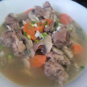接着加入胡萝卜和蘑菇,喜欢其他蔬菜的也可以加,放点海带味道会毕竟鲜哦! 最后放一点点鲜酱油调味,味道淡的话放点盐。