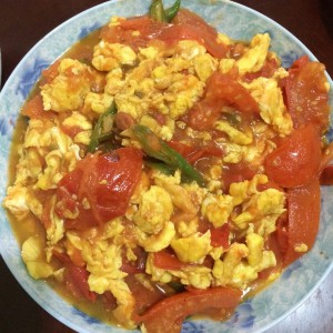 葱姜蒜爆锅,放入西红柿炒熟后加入鸡蛋最后放入盐、鸡精即可