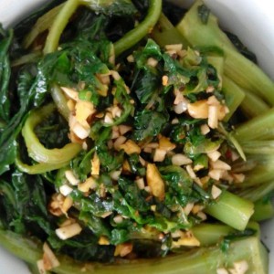 然后烧水。水开了。注意。这个时候先把头子放下去煮。叶子比较快就熟了。所以先煮下头子。然后差不多颜色变了就捞起来。这个吃生脆点安逸些。
