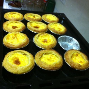 放入烤箱用上下管220度放置中层15分钟后即可~小窍门:烤至挞水变脆有焦黄颜色时拿出来冷却一下,再烤两三分钟即可
