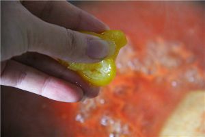 待冰糖溶解,挤入少许柠檬汁,继续搅拌