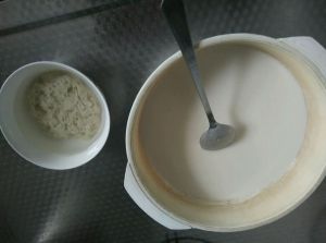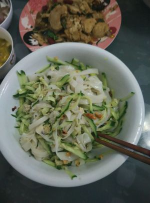 把面粉加盐揉成一个光滑的面团,然后放在那边醒个几个小时,然后开始用水洗面团,之前的步骤忘了拍了,这是洗好的面筋和凉皮面,放几个小时把什么的清水倒掉就是凉皮面了