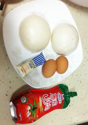 装盘。最后在馒头的表面挤入番茄沙司、沙拉酱即可。
