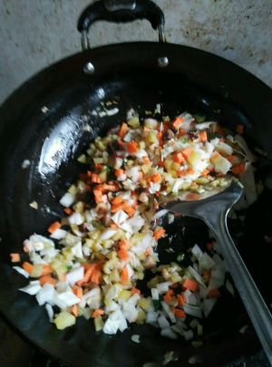 加入咖喱粉,依个人口味再加盐,醋,调好味,加入淀粉勾芡