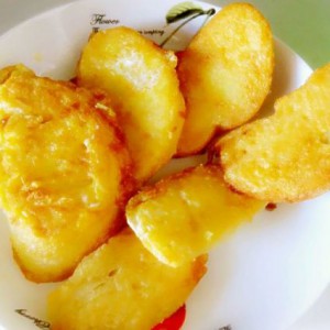 热锅,倒油,放馒头片!注意是裹完蛋液的。火不要太急,弄几次正反面翻来翻去就可以啦。