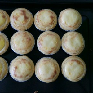 将蛋挞放入烤箱中层,190度上下火烤15分钟