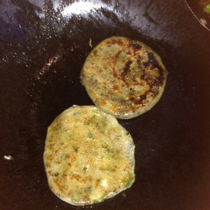 小火,锅底摸一点油,下锅,炕到两面金黄就好啦,今天失败了,炕糊