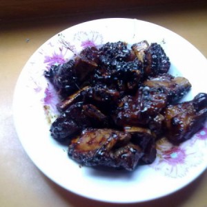排骨切段洗净,加入少许姜片.十三香.生抽.酒.盐淹渍两小时