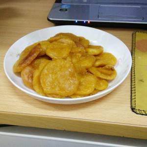 煎完第一个,就可以尝尝软硬度,和甜度。煎的比较多就要稍软点,因为冷了会变得硬一点。